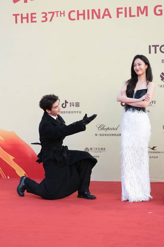 张子枫凭《穿过月亮的旅行》提名最佳女主角,一袭黑裙轻熟女风范。
