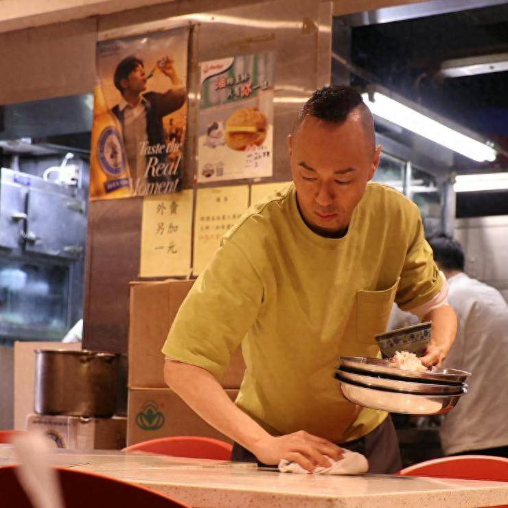 前段时间,看见港星戴耀明在饭店打工,洗盘子、洗厕所。