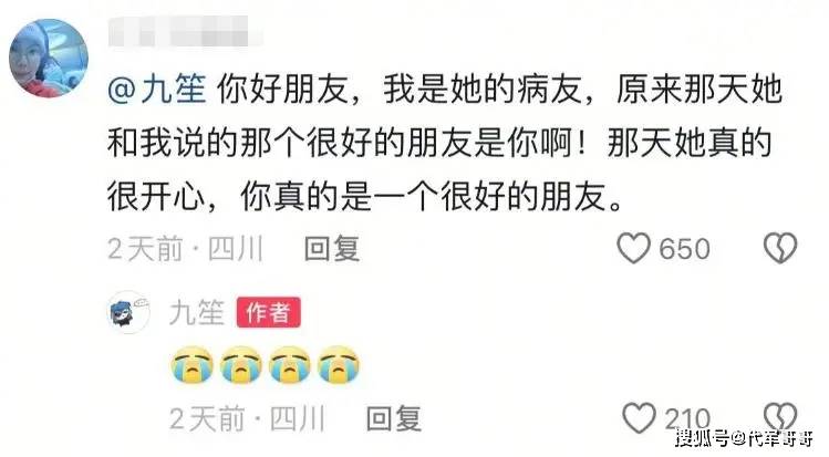 在评论区,网友们纷纷留言送别。“一路走好,小蛋挞,愿天堂没有病痛”“这么美好的女孩,一定会在天堂幸福的”“虽然从未谋面,但你的笑容永远留在我们心中”…… 这些留言,汇聚成了一股温暖而又悲伤的洪流,表达着大家对小蛋挞的怀念与祝福。曾经那个鲜活的女孩,用她的乐观和坚强,触动了无数人的心弦,如今虽已离去,但她的精神却永远活在了大家的记忆中,成为了一段难以磨灭的印记。