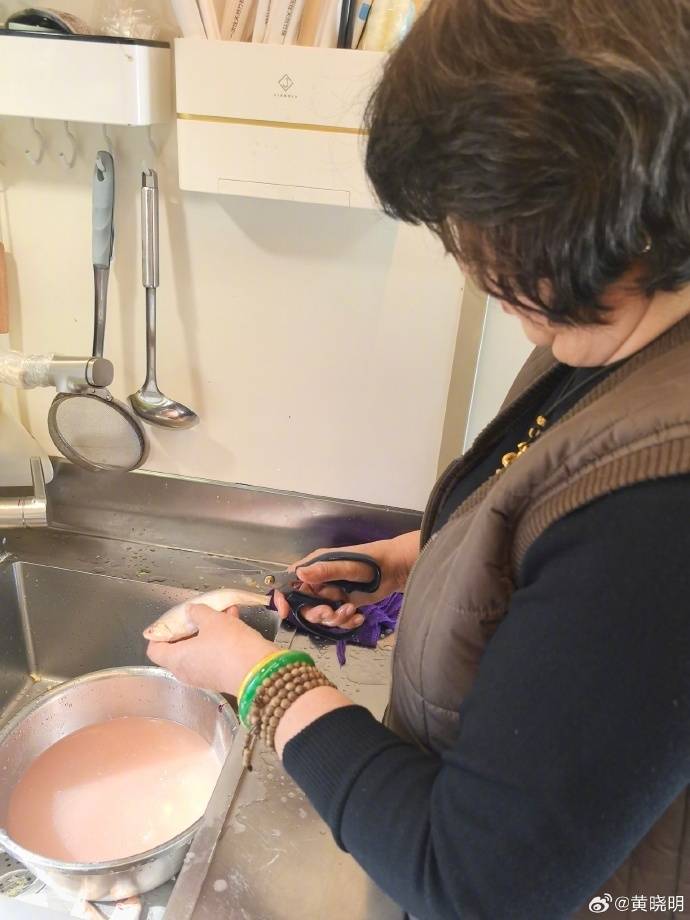 他晒出了自己的妈妈前往剧组为自己做午餐的画面,当时的黄妈妈一身穿着打扮也显得特别的休闲,但是手腕上却佩戴着绿色的翡翠手镯和黄金手镯,彰显了贵气。她正专注地用剪刀处理鱼,姿态自然,对于这些家务事早已是手到擒来了,贤惠干练的形象也是显而易见了。