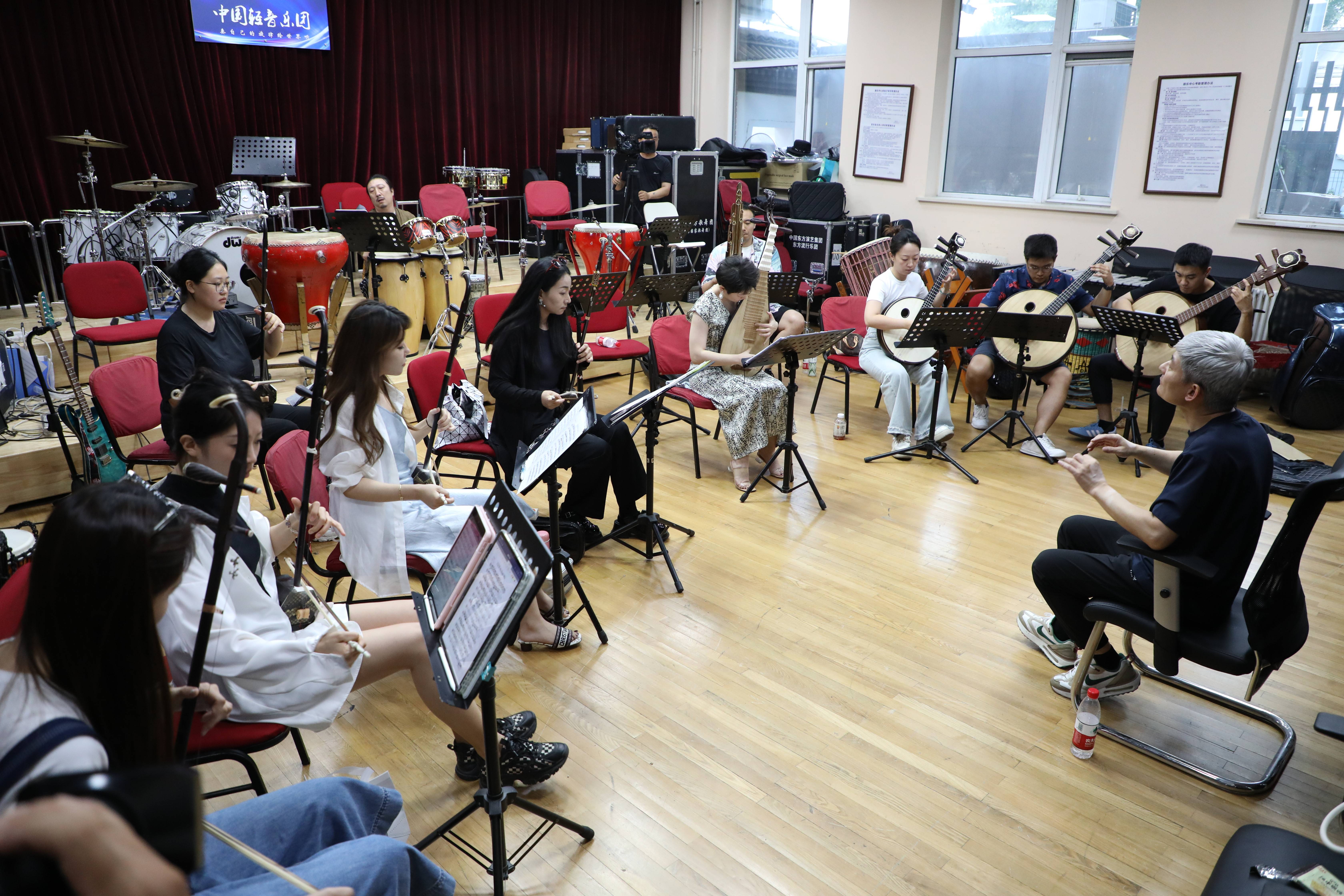 音乐总监马久越与聆听中国室内乐团”于7月21日晚在京进行排练。排练现场马久越带领着乐团演奏着一首首悠扬的曲目,乐手老师们亦是全情投入、如痴如醉,他们配合默契,一丝不苟,严谨的排练态度和现场效果堪比正式演出。马久越表示,新民乐的创作风格即能融合各种各样的曲风,又是在传统音乐基础上的革新,希望8月4日在音乐会上给带来一场极具特色的国乐盛宴。