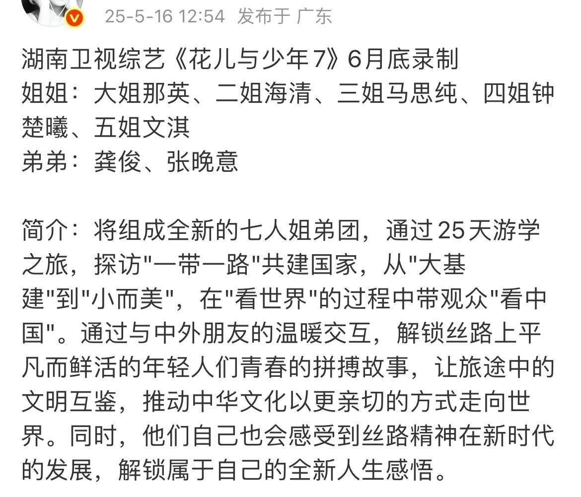 最让网友关心的《花儿与少年7》的嘉宾阵容也被曝光,依旧是经典的5 2模式。