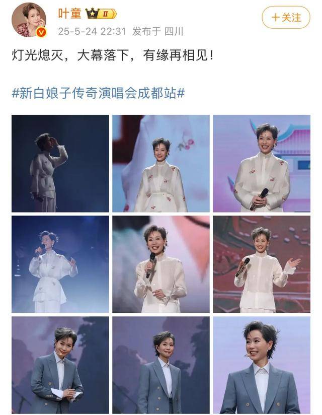 凌晨,62岁知名女演员叶童在个人社交平台上宣布,将不再参与《新白娘子传奇演唱会》。