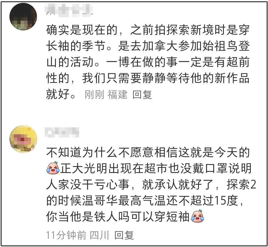 有人说,偶遇照是好几个月前拍的,王一博是去拍纪录片了;有人说偶遇照就是这几天拍的,王一博穿着短袖呢;有人说不管什么时候拍的,私人行程拒绝打探;有人说明明是公开行程商务活动,不要乱说话,王一博是去超市体验生活的。