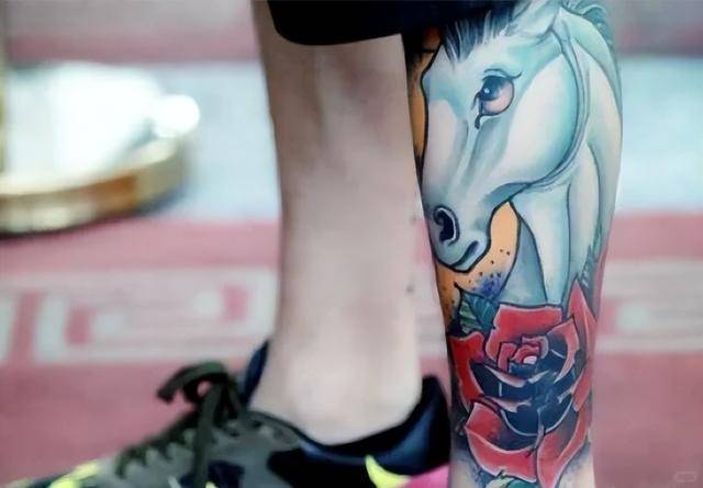 就像欧豪曾经晒出自己小腿上的“玫瑰马”纹身,可以看到是很大片的,图案看起来就十分夸张,颜色也很艳丽。而欧豪的解释是:这个纹身展现了他的个性和态度。