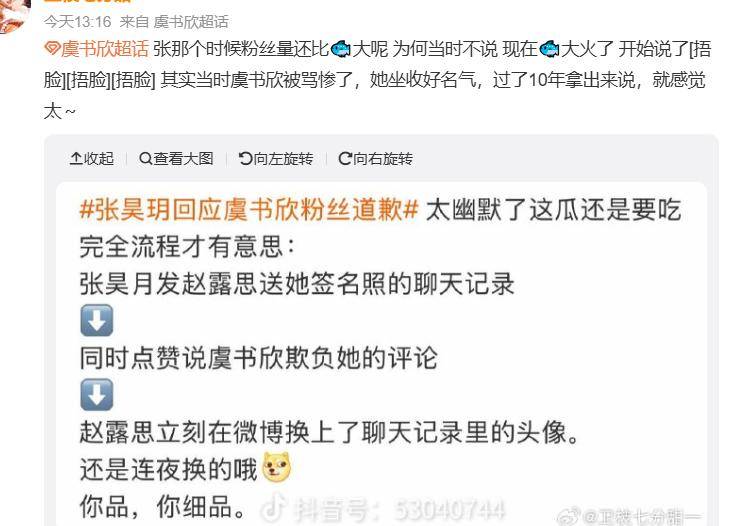 但也有网友认为,虞书欣本人并没有什么问题,这些陈年旧事被再次翻出来,还是赵露思的锅,她自己和公司的解约风波闹大了,就想拉自己的竞争对手下水。