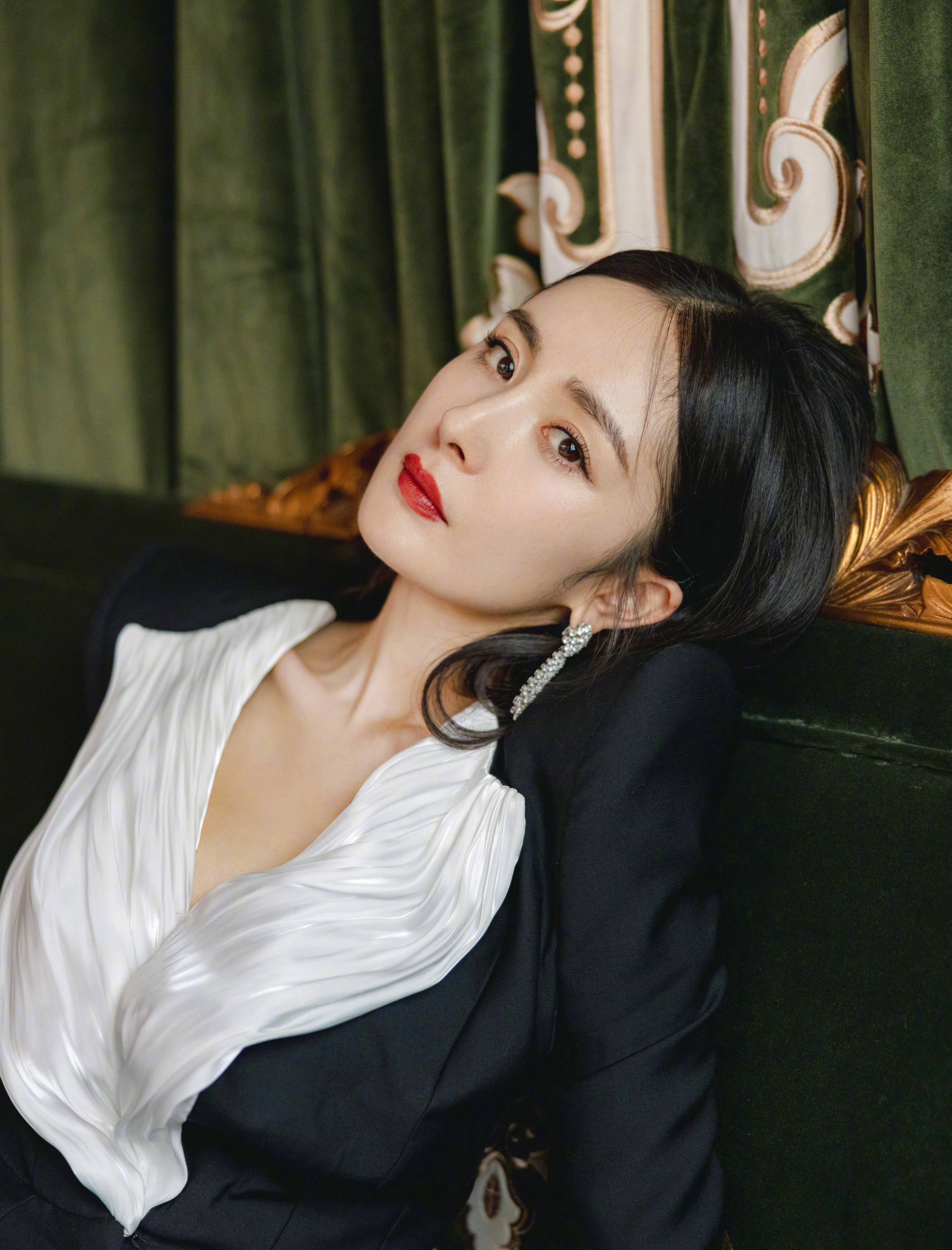 搜狐娱乐讯 近日,杨幂的一组时尚大片爆出,图中,杨幂穿着黑色礼裙坐在沙发上,五官精致,眼神动人。