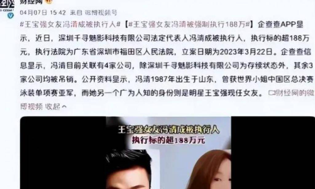 2023年,有人质疑冯清学历,怀疑她以前有过孩子,她的公司更是暴雷,被列为失信企业,自己也欠债188万元。