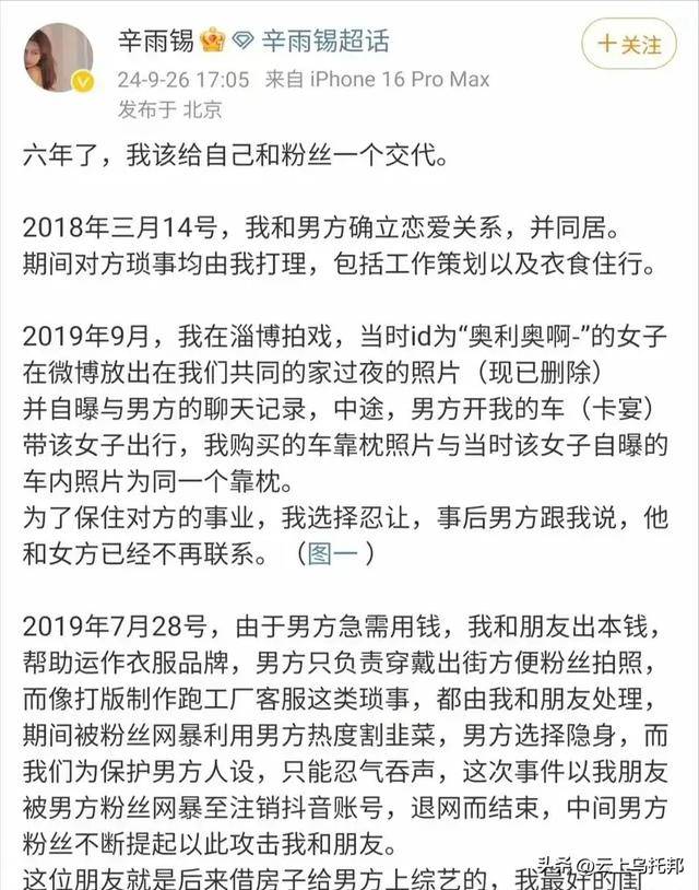 再看德云社这边,最近几年简直成了“丑闻批发部”,2024年,秦霄贤被前女友辛雨锡爆“不忠门”,万字长文揭露其恋爱期间多次劈腿,“富二代”人设碎了一地。