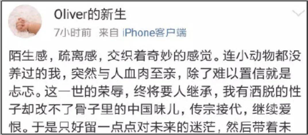 不仅如此,疑似于正本人的小号还感慨,自己改不了骨子里的中国味儿,一心要传宗接代。