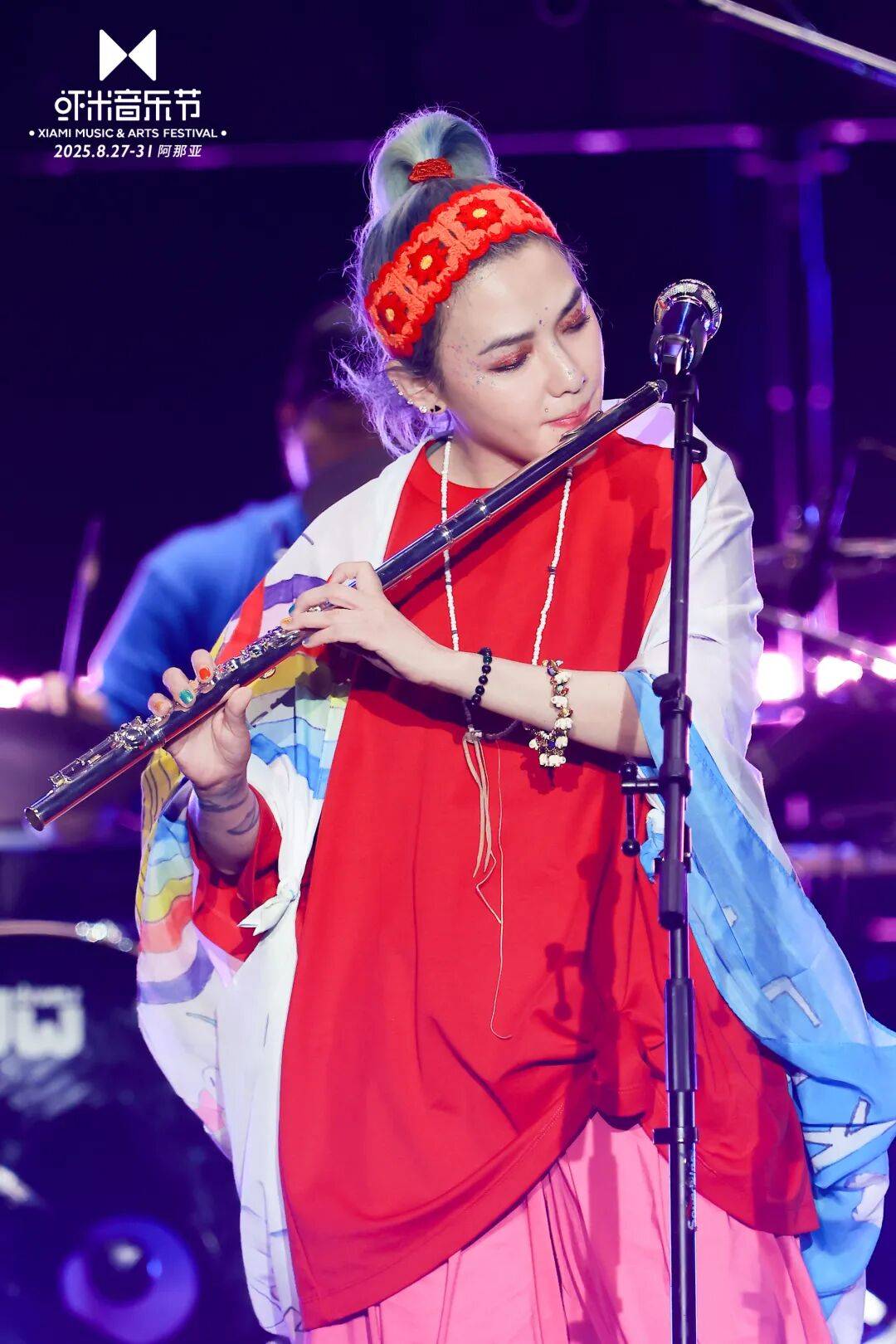 8月31日,夜色刚漫过沙滩,范晓萱&100% 乐团登上舞台。她身披“二次元”毛巾作披肩,一头白发高高束起飘扬在空中,每一处细节都在诉说着魔女的“不被定义” 。