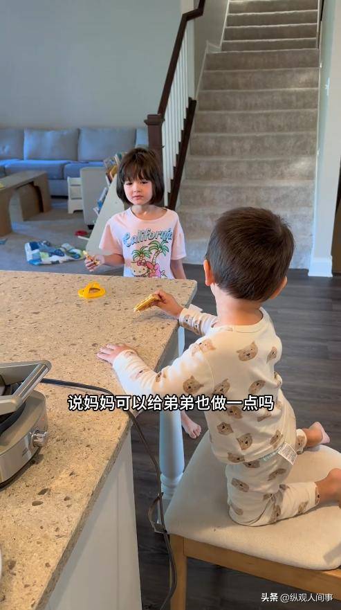 当她吃完华夫饼后,还贴心的想到了弟弟,便对小黄说道:“妈妈,能给弟弟也做一点吗”?