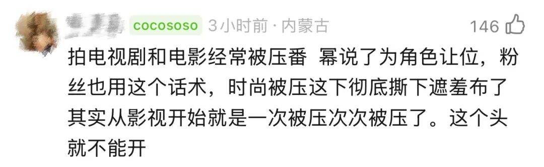 说白了,剧集合作时为戏让番是行业常见操作,演员为角色服务理所应当。但纯时尚封面拼的就是实打实的时尚地位和商业价值,每一个排位都是业内对明星商业价值的公开认证。