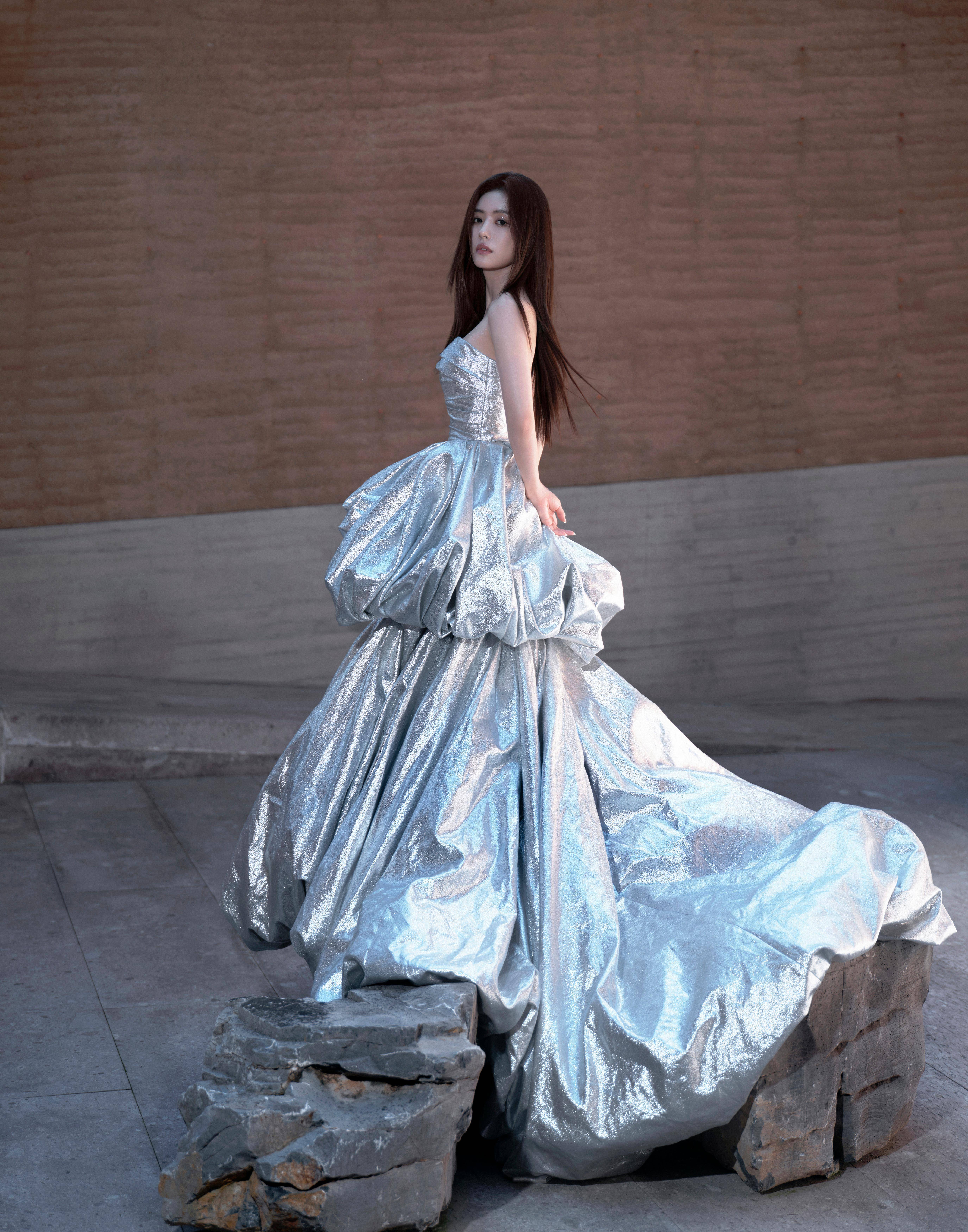 搜狐娱乐讯 9月8日,蔡文静的一组时尚大片释出。图中,蔡文静穿着银色抹胸裙,造型时尚,踩在石头上拍照女王气质十足。