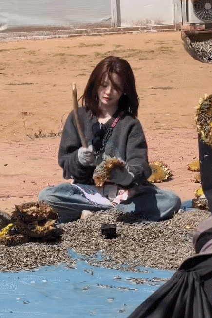 搜狐娱乐讯 10日,杨超越在内蒙古录制综艺的新路透曝光,她坐在地上用棒子敲打向日葵取瓜子,因超高颜值被网友们夸赞是“瓜子西施”!