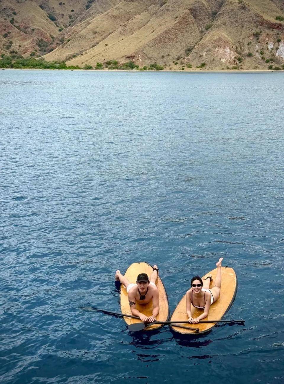但最令人意外的是,杨采钰分享的另一张合照。照片中,杨采钰与一名颜值高身材好的男士一起趴在浆板上看向镜头,而且俩人都笑得好开心,男帅女美的画面别提有多般配了。为此有网友就认为该男士就是杨采钰的老公。