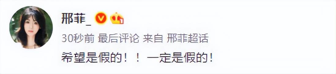 当下,圈内好友邢菲也发文了,她难以置信的写道:“希望是假的,一定是假的。”不过这条动态随后被邢菲删除了。