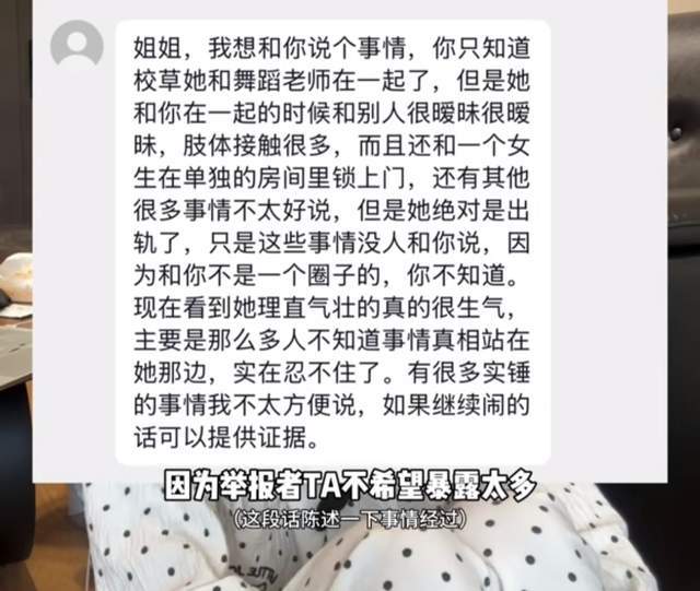 这期间,胡诗桐收到来自各方的曝料,并透露,校草在与其交往期间,不止一次出轨,相关的聊天记录被曝光,而且校草还在直播间公开指责胡诗桐,说其有孩子,当初没有告诉她等等。
