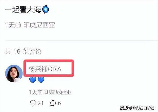 有网友直接留言说:磕到了!杨采钰火速在评论区回复:两个蓝色爱心。可见,现在的杨采钰对老公也不再遮遮掩掩了。