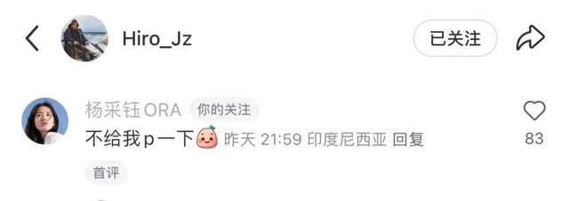 更好笑的是,杨采钰在老公的评论区留言:不给我P一下!