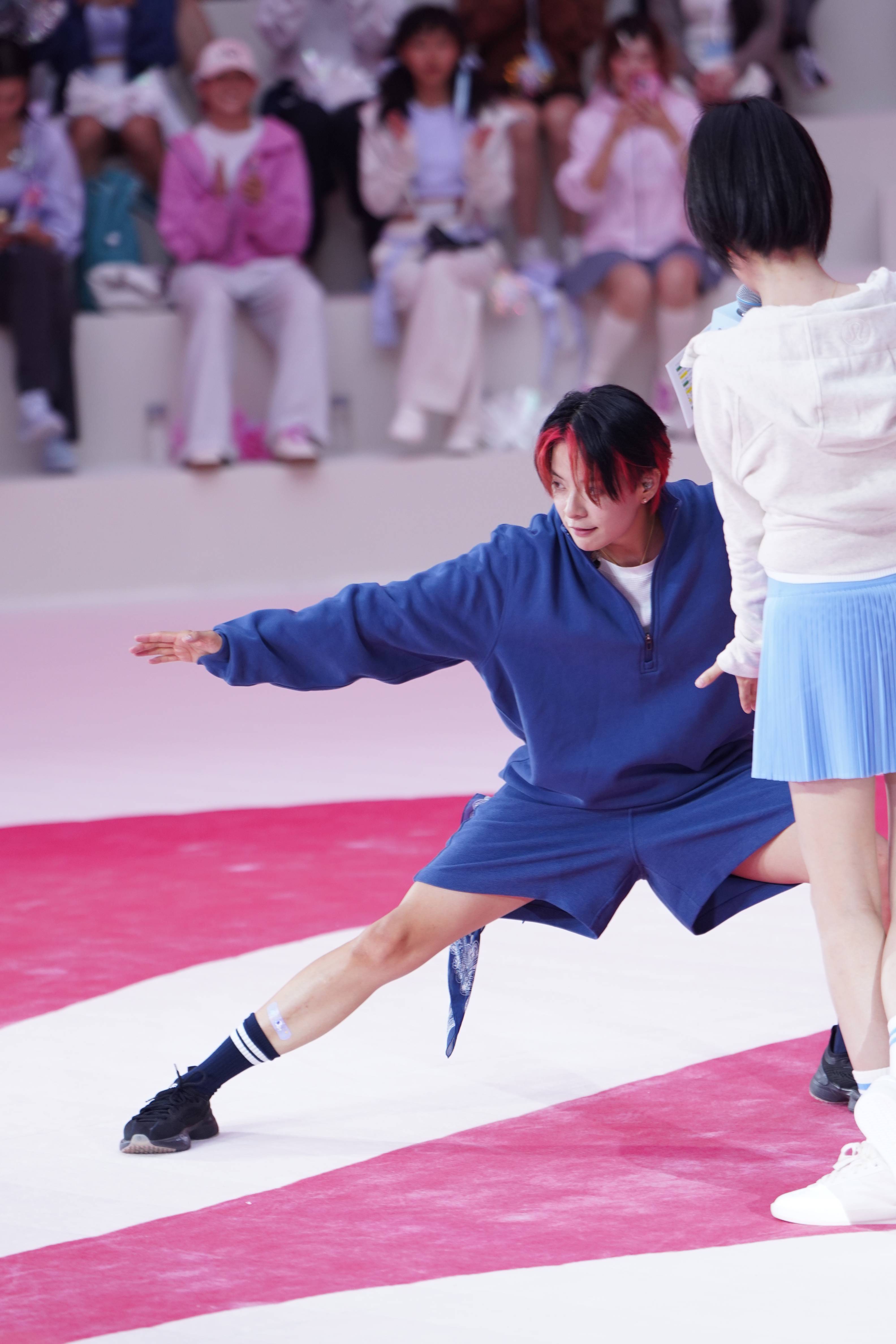 刘逸云以一袭斜纹蓝穿搭现身,半拉链卫衣搭配同系列高腰短裤,阳光松弛;董思成身着薰衣草紫Steady State圆领卫衣,搭配Textured Spacer短裤,少年感爆棚;夏梦一身糖霜粉色Scuba短款连衣裙,甜美元气。