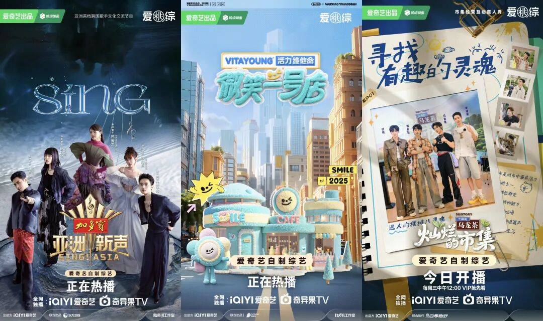 当然,不只有《姐姐当家》,今年暑期档,爱奇艺还孵化了多档新IP,以差异化布局满足用户的多元需求。其中,《亚洲新声》以“跨文化音乐融合”为核心,搭建亚洲音乐交流平台,推动华语音乐全球传播;《微笑一号店》在真实创业场景折射Z世代成长轨迹,实现线上内容与线下消费循环;《灿烂的市集》不仅展现当下市集经济的 “烟火气”,更挖掘市集背后的 “在地文化”……