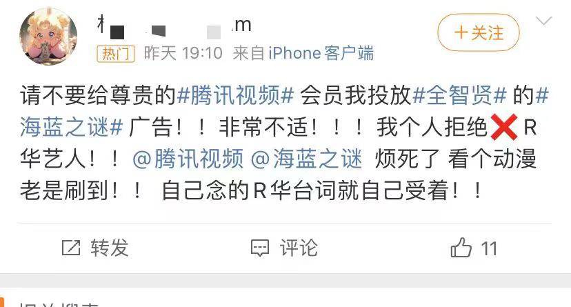 网友开始抵制平台投放的全智贤广告,表示不适合,她是R华艺人,看来大家真的在抵制全智贤。