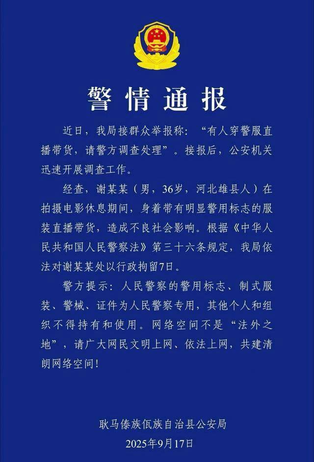 任何人都不应利用警服获取关注、博取流量,甚至用于卖货赚钱。
