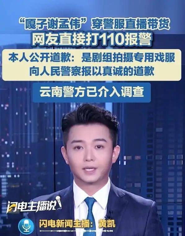直播中,谢孟伟身穿一套警服,正热情推销某款商品。