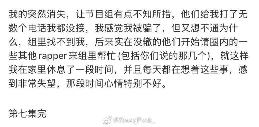 在昨天更新的第七集《失望》中,李秋泽透露自己当年终于做出了反应,选择突然消失离开了节目组!