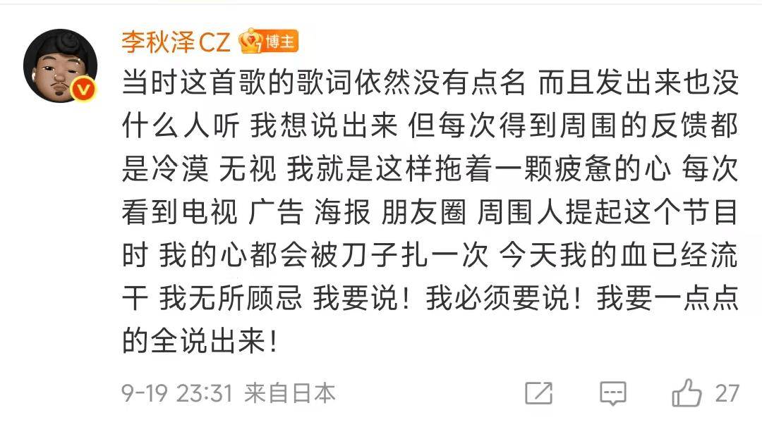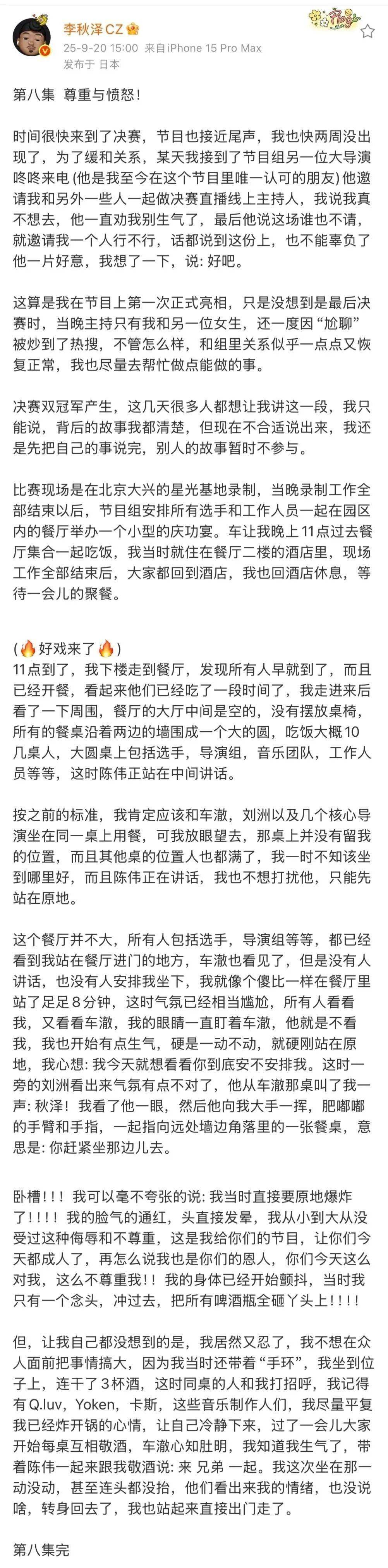 就在最近,开怼车澈的李秋泽爆出了遭遇的一系列不公平对待。