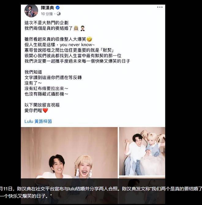 原创 陈汉典lulu宣布结婚, 两人甜蜜对视,幸福感十足!