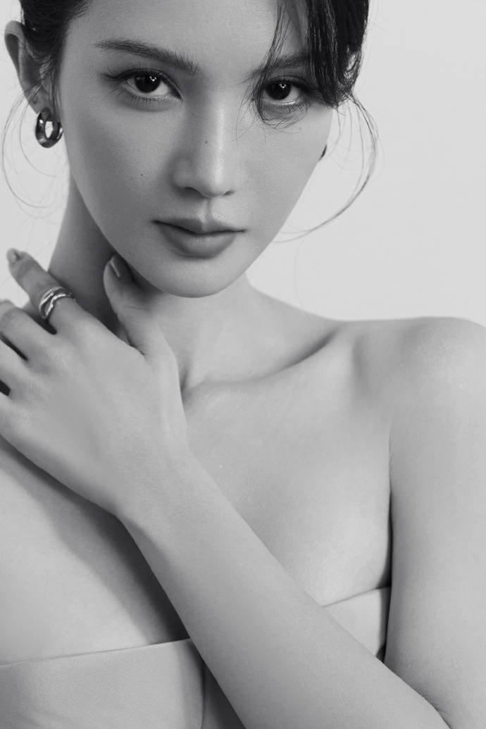 金晨尝试新妆容风格,眼神魅惑。