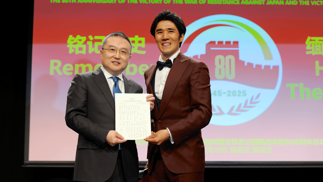在庄重热烈的氛围中,一首原创歌曲的全球首发成为大会的感人篇章。旅居新西兰的男中音歌唱家周楠,首次演绎其原创作品《熔光》。这首作品由周楠亲自作词、作曲并演唱,专为纪念新西兰国际友人路易·艾黎先生而创作。《熔光》不仅是一首歌曲,更配套推出了音乐纪录片MV,由新西兰华裔纪录片导演黄正东执导、新西兰演艺集团出品。影片通过音乐与影像相结合的方式,生动再现艾黎先生跨越国界、无私奉献的一生,以艺术视角展现这位伟大国际友人的精神风范。