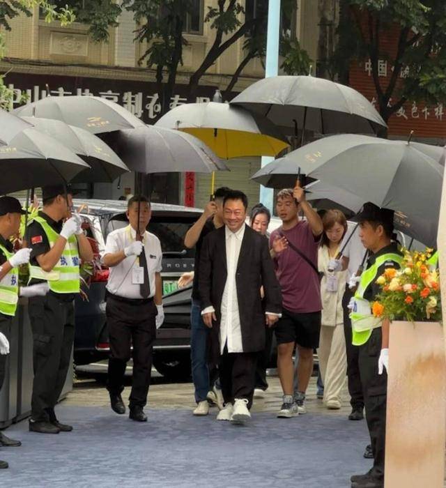 全方位保护黎耀祥抵达活动场地,而且确保全程不被雨淋湿,排场十分厉害,说是巨星都不为过。
