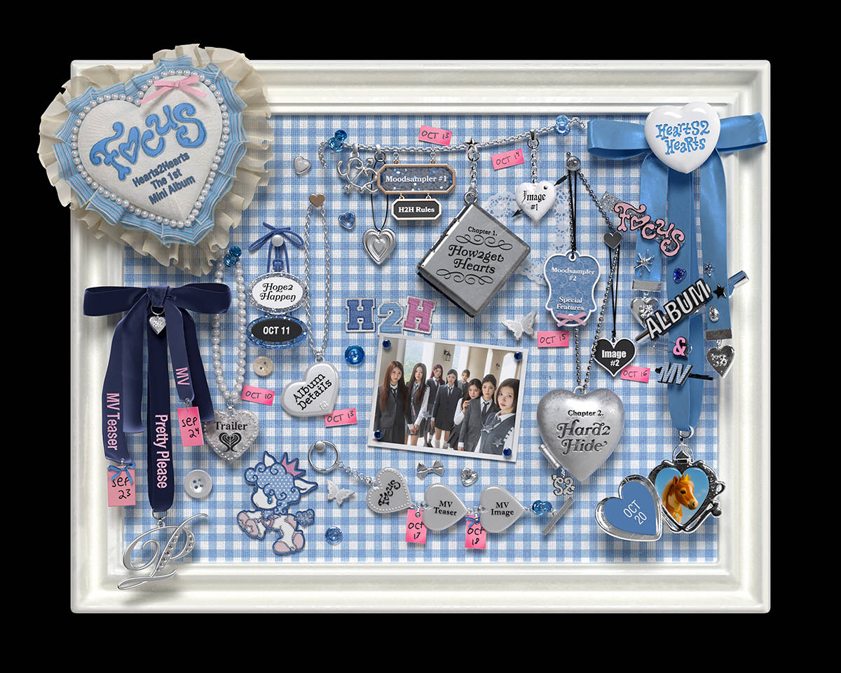 Hearts2Hearts的首张迷你专辑《FOCUS》共收录6首风格多样的歌曲,其中包括主打曲《FOCUS》以及今年6月发行的单曲《STYLE》。该专辑将于10月20日下午5点(北京时间)通过QQ音乐、酷狗音乐、酷我音乐等国内外各大音源网站公开完整音源。
