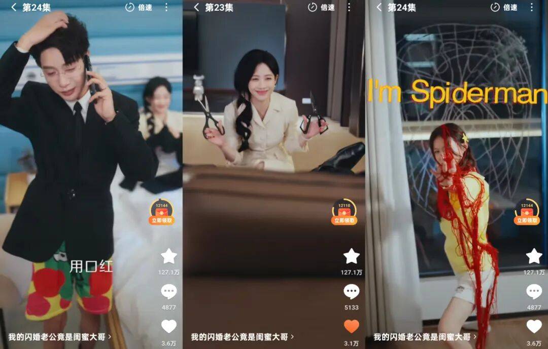 其中,《我的闪婚老公是闺蜜大哥》还拍出了女主吃蘑菇中毒后产生幻觉的搞笑名场面。