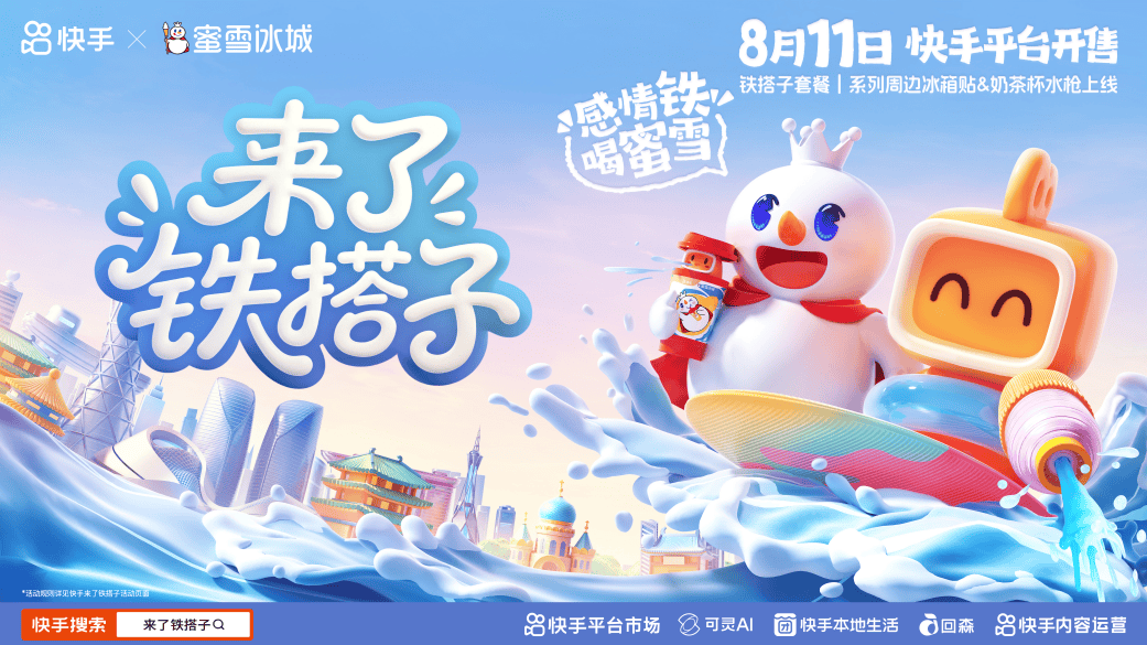 一波未平一波又起,踩着暑期营销节点的尾巴,有“活人感”的蜜雪冰城再度携手擅长打造原生热点的快手,发起了“感情铁,喝蜜雪,来了铁搭子”的联名活动。