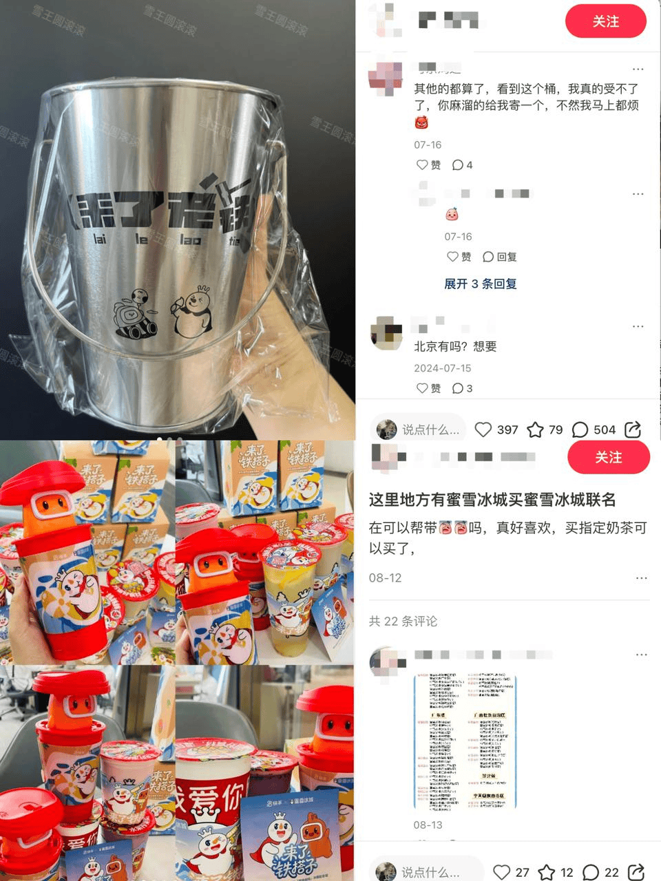 去年快手和蜜雪联名的趣味水杯产品“来了老铁”铁桶曾在社交媒体上刮起一阵求购风潮,而今年的水杯设计上创意愈发独特,今年的“清凉铁铁”奶茶杯水枪,切入夏季玩水、朋友互动整活的场景,极具巧思。