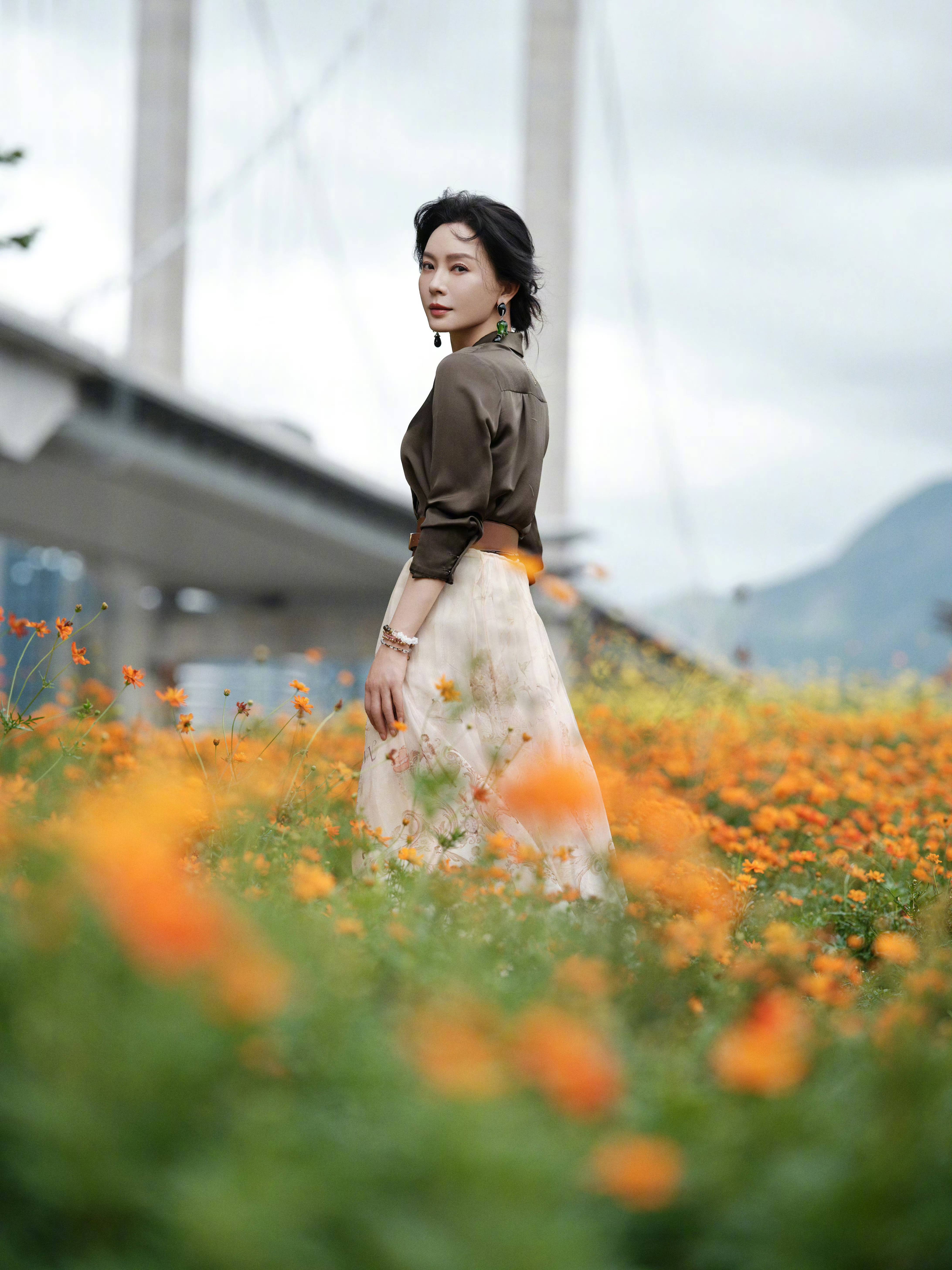 陈数花海中回眸。