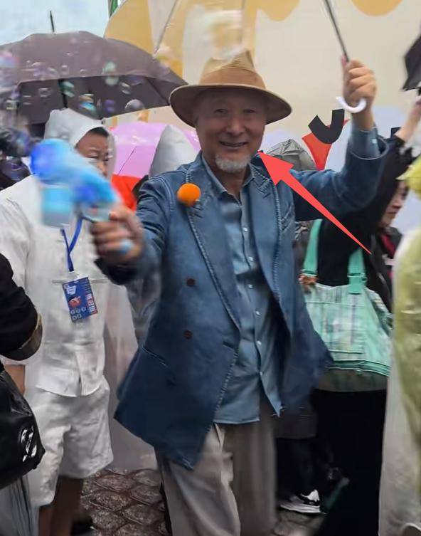 从观众面前一路小跑过去,看上去非常轻盈,也不需要旁人搀扶,而且还能拿着泡泡机跟观众互动。