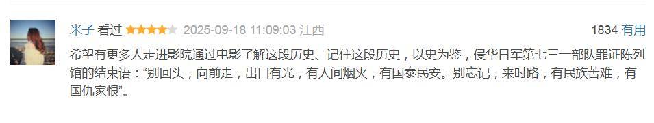 《731》提醒我们,历史不能忘却,警钟必须长鸣。