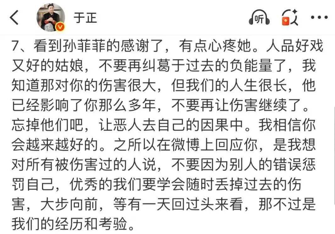 于正2023年说的话,孙菲菲2025年7月才看到。