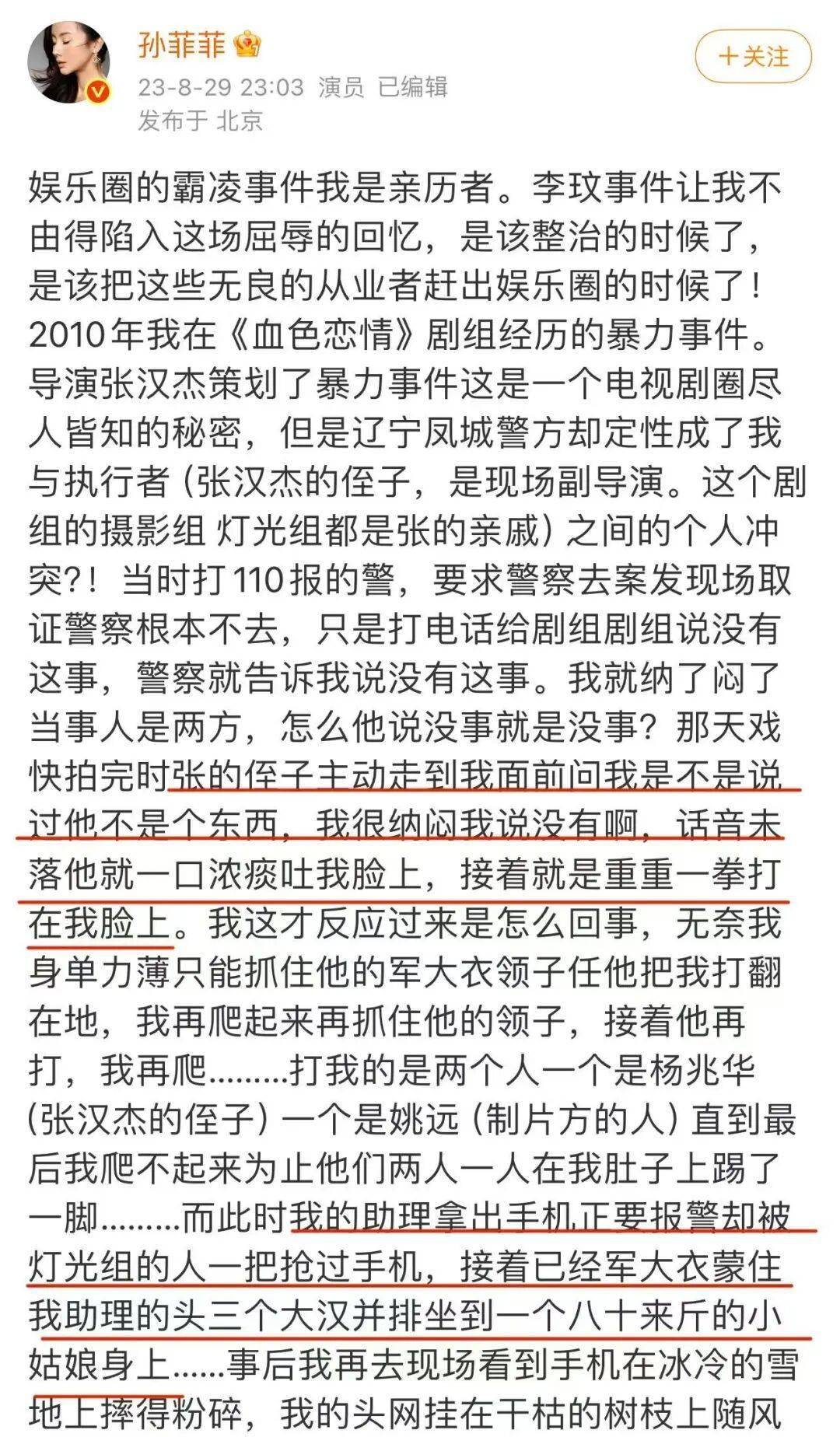 一直顺风顺水的孙菲菲可能从来没有想过她会遭遇暴力。