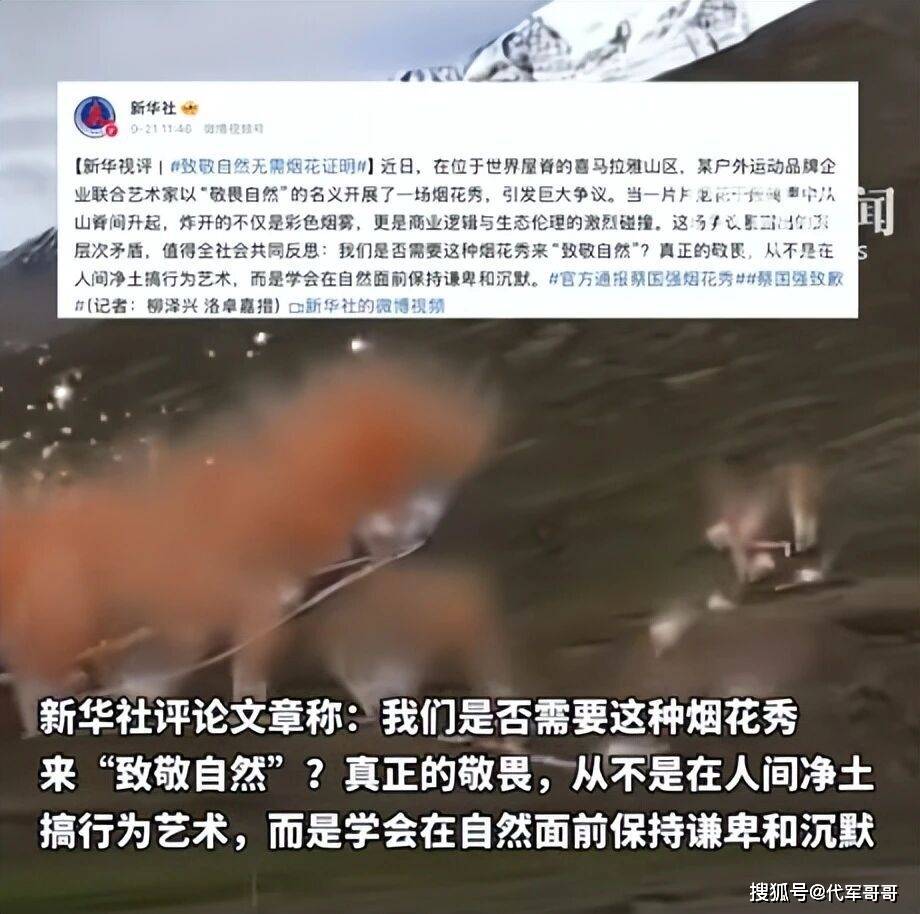 2025 年 9 月 19 日,户外品牌始祖鸟与艺术家蔡国强在西藏喜马拉雅山脉江孜热龙地区(海拔约 5500 米)联合呈现烟花艺术《升龙》。这场筹备 30 余年的作品通过三幕山脊烟花形成 "盘旋的龙" 景观,却在视频发布后瞬间点燃舆论。