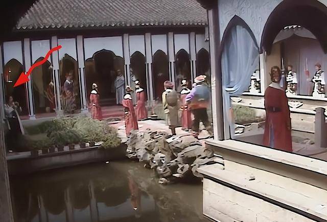 还有就是孙悟空乔装成神医,给朱紫国国王看病这一集,当镜头给到宫殿外的画面时,不远处有一位女子正在全神贯注的拍照。