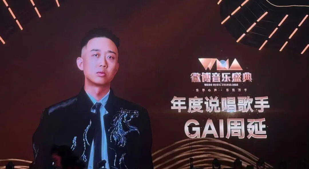 GAI在今天成为微博音乐盛典年度说唱歌手,这已经是GAI连续六年获此殊荣!