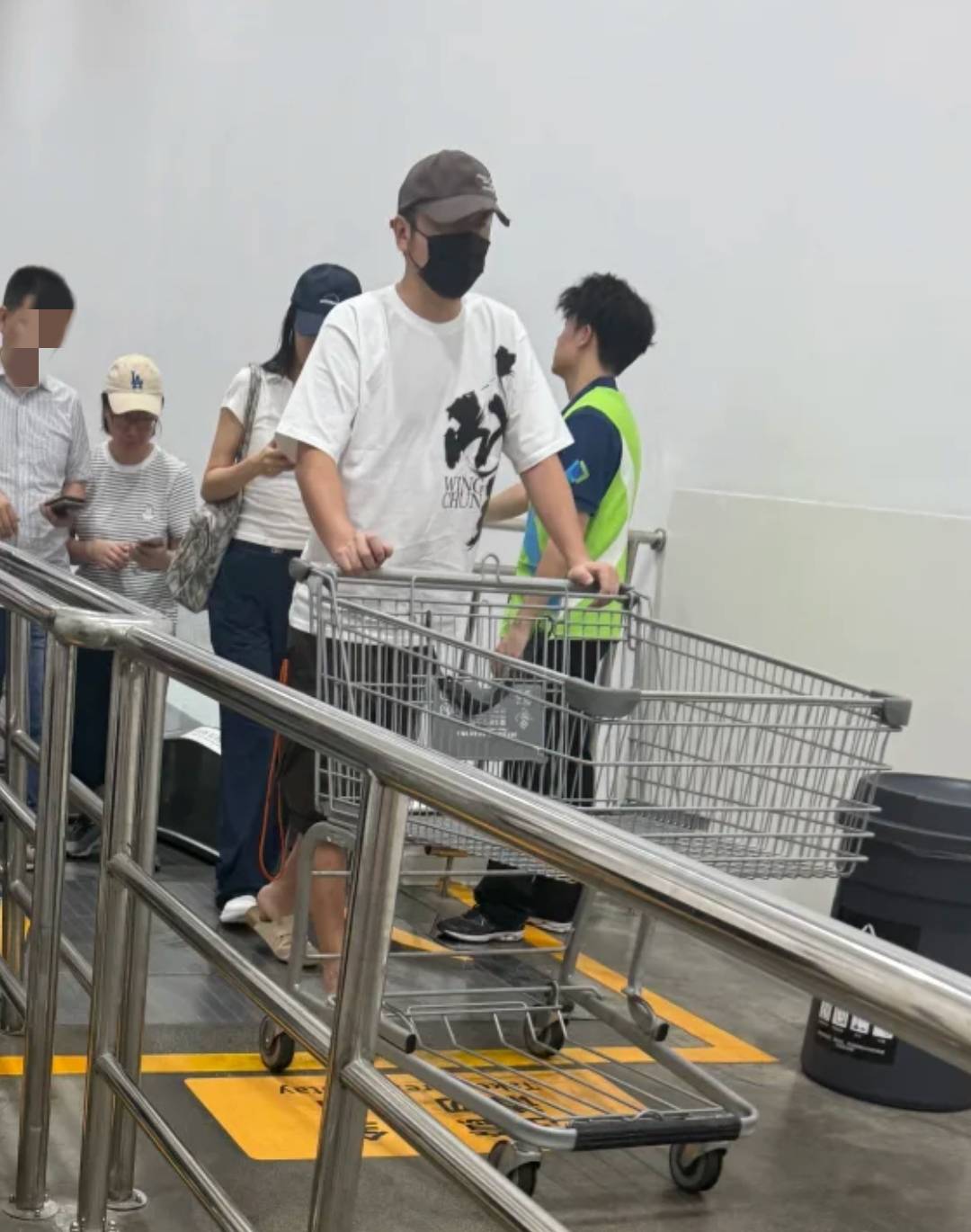 曝光画面中,雷佳音穿着白色T恤,搭配黑色短裤,全副武装地戴着帽子口罩,一直低头推着购物车,看样子是生怕被人认出。不过雷佳音的长相在男星中实在算不上帅,长相偏大众并不惹眼,这样戴着帽子口罩反而更引人注目。