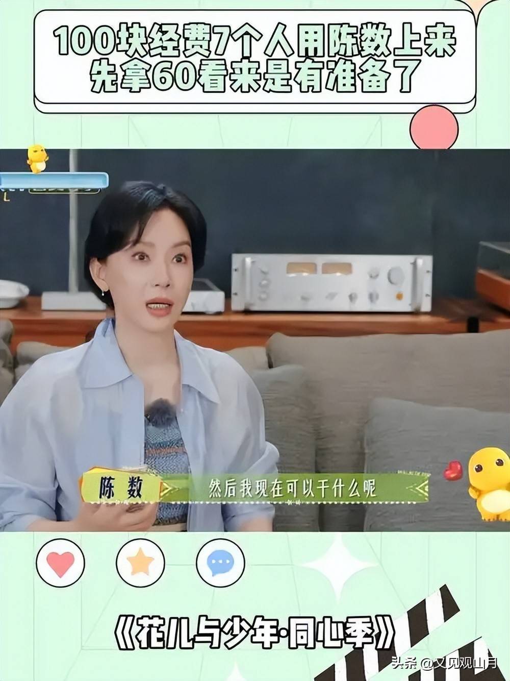镜头回放到《花少7》开播第三日,陈数数学是体育老师教的话题突然空降热搜。这位手握白玉兰奖杯的"三料视后",此刻正对着40元零钱抓耳挠腮——半小时前她刚用闪电手速抢到节目组热线,却因要走团队60%经费引发连环社死现场。