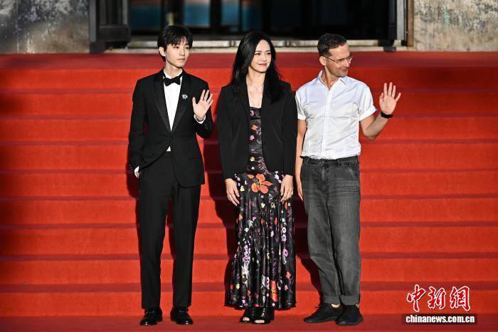 图为瑞士导演拉蒙·曲尔歇尔、演员王俊凯(左)、姚晨(中)亮相红毯。中新社记者 韦亮 摄